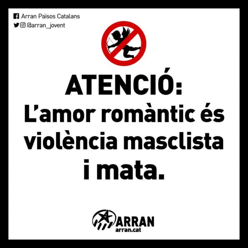 Ara tenim també un Departament d’Igualtat i Feminismes, per institucionalitzar tota aquesta comèdia. Aquest cartell, com a mostra de la tonteria que porten al Departament en qüestió, felicitació del passat St. Valentí.
